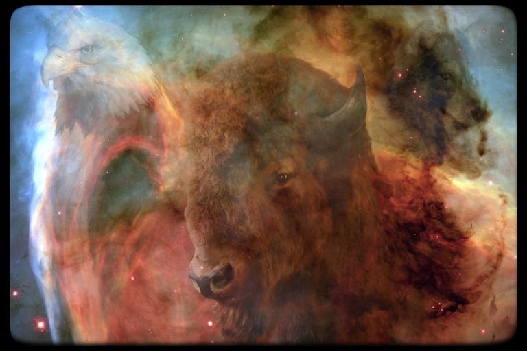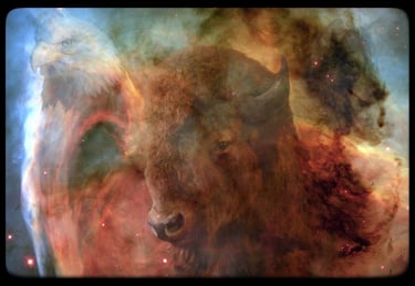 Thanks to photo editing software I turn a few into what I call Space Art. I take my photos and bring them into photos taken with our space telescopes.