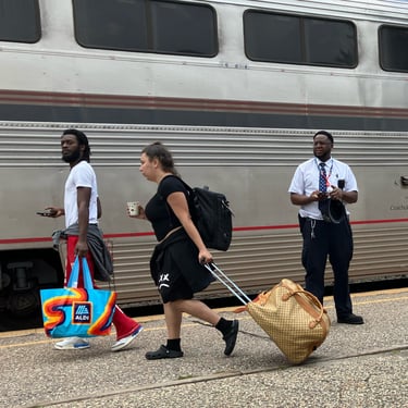 I look at a train track and see it as just another street running in and out a city. A train depot people scurrying along with suitcases behind them makes for great Street Photography.